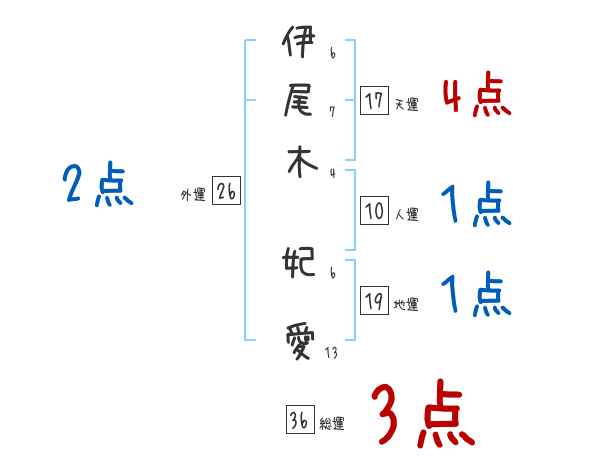 伊尾木妃愛さんの画数の鑑定結果