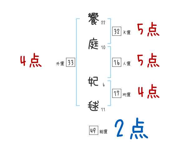 天運![]() | 饗庭妃毬さんの天運は32画の5つ星!柔軟性があり成功する。チャンスが多く金運が良い。 家系が持つ宿命的な運勢を表します。祖先から受け継いだ苗字ですので自分の力が及びません。家柄を象徴します。 |