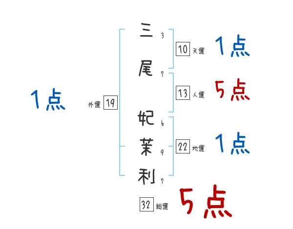 三尾妃茉利さんの画数の鑑定結果