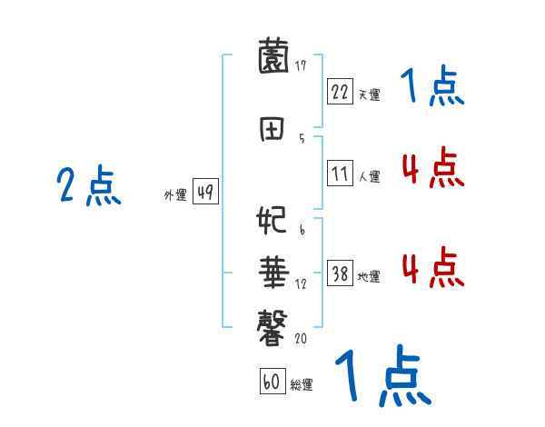 薗田妃華馨さんの画数の鑑定結果