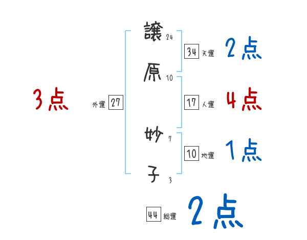 譲原妙子さんの画数の鑑定結果