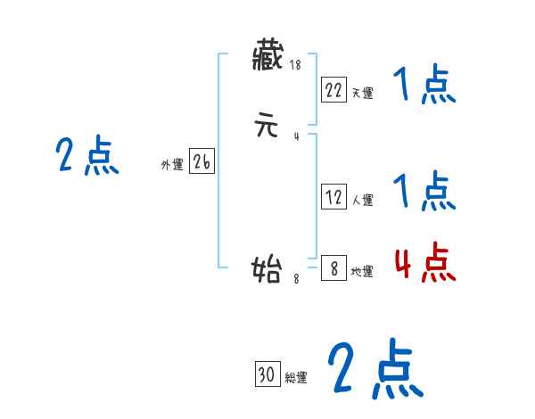 藏元始さんの画数の鑑定結果