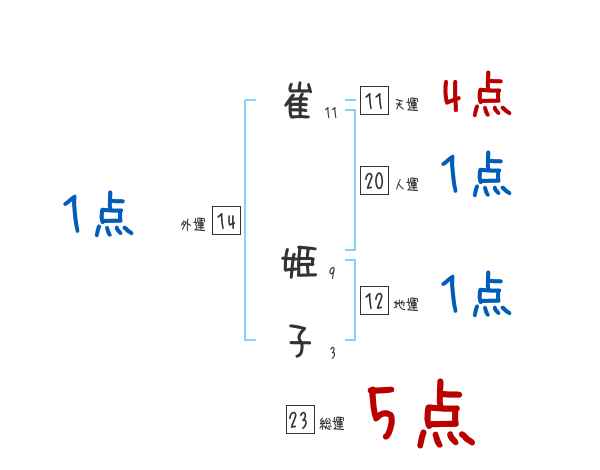 外運![]() | 崔姫子さんの外運は14画の1つ星!人に対して優しいがストレスを溜め込みがち。人間関係のトラブルを避けるよう気をつけましょう。 生活面を象徴する運勢です。外部から受ける影響力を表し、結婚運、家庭運や職場、環境への順応性を表します。 |