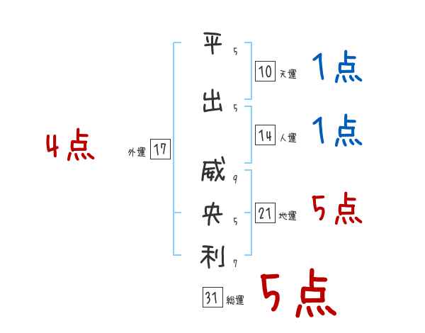 平出威央利さんの画数の鑑定結果