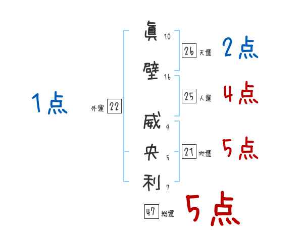 天運![]() | 眞壁威央利さんの天運は26画の2つ星!波瀾万丈かも。信頼できる人を大事にしましょう。 家系が持つ宿命的な運勢を表します。祖先から受け継いだ苗字ですので自分の力が及びません。家柄を象徴します。 |