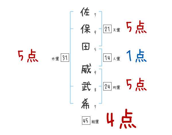佐保田威武希さんの画数の鑑定結果