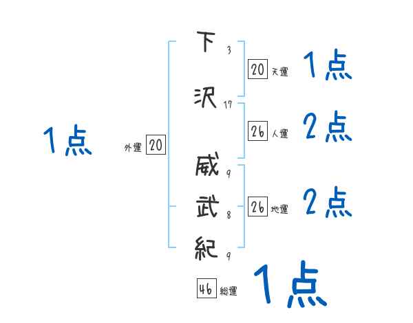 家系が持つ宿命的な運勢を表します。祖先から受け継いだ苗字ですので自分の力が及びません。家柄を象徴します。