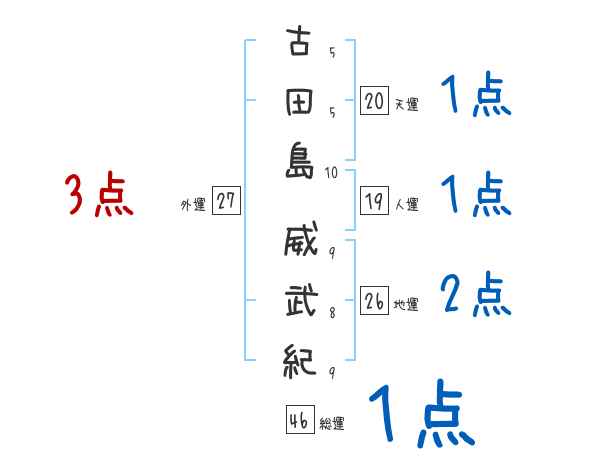 古田島威武紀さんの画数の鑑定結果