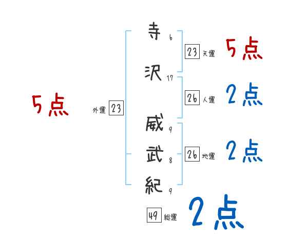 寺沢威武紀さんの画数の鑑定結果