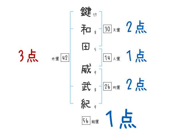 鍵和田威武紀さんの画数の鑑定結果