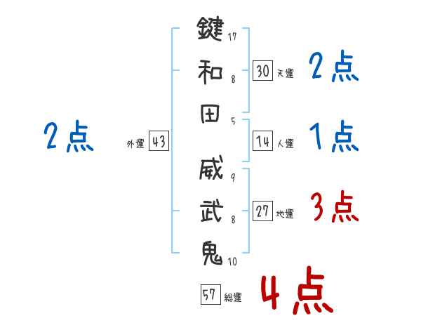 鍵和田威武鬼さんの画数の鑑定結果