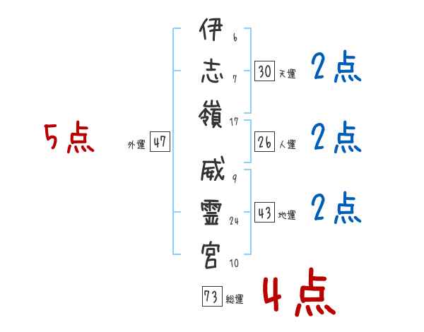伊志嶺威霊宮さんの外運は47画の5つ星