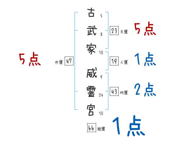 古武家威霊宮さんの画数の鑑定結果