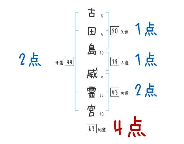 古田島威霊宮さんの画数の鑑定結果