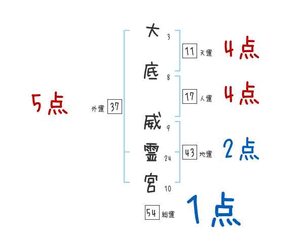 家系が持つ宿命的な運勢を表します。祖先から受け継いだ苗字ですので自分の力が及びません。家柄を象徴します。