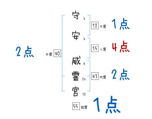 守安威霊宮さんの画数の鑑定結果