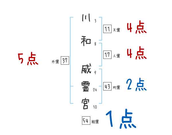 川和威霊宮さんの画数の鑑定結果