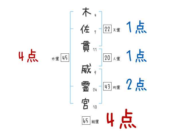 木佐貫威霊宮さんの画数の鑑定結果