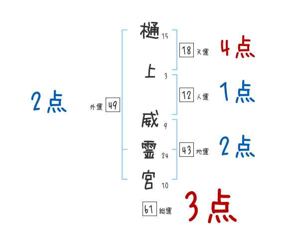 天運![]() | 樋上威霊宮さんの天運は18画の4つ星!情熱的で剛気。忍耐力があり信頼される。 家系が持つ宿命的な運勢を表します。祖先から受け継いだ苗字ですので自分の力が及びません。家柄を象徴します。 |