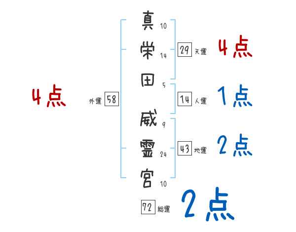 真栄田威霊宮さんの画数の鑑定結果