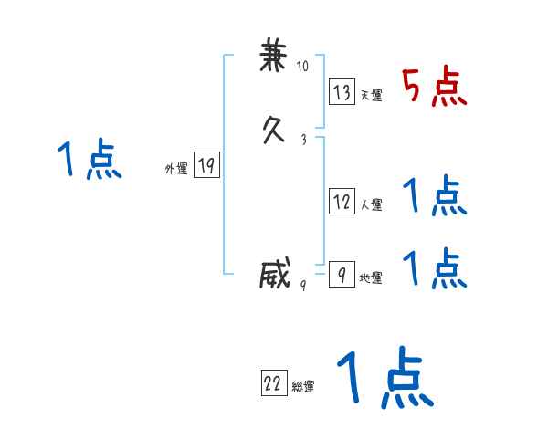 兼久威さんの画数の鑑定結果