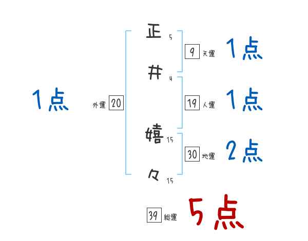 正井嬉々さんの画数の鑑定結果