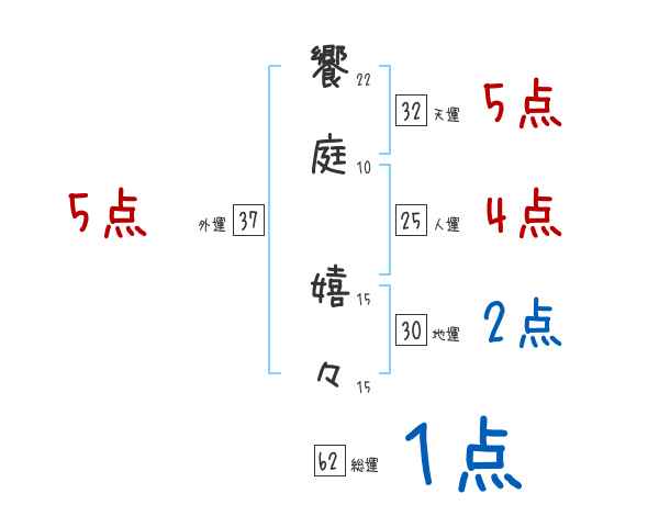 饗庭嬉々さんの画数の鑑定結果