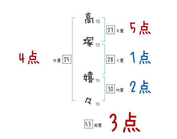 高塚嬉々さんの画数の鑑定結果