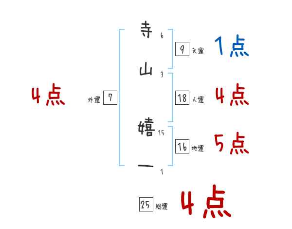 寺山嬉一さんの画数の鑑定結果