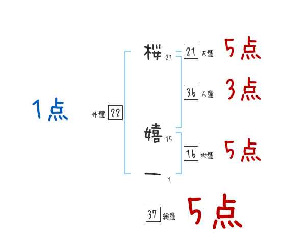 桜嬉一さんの画数の鑑定結果
