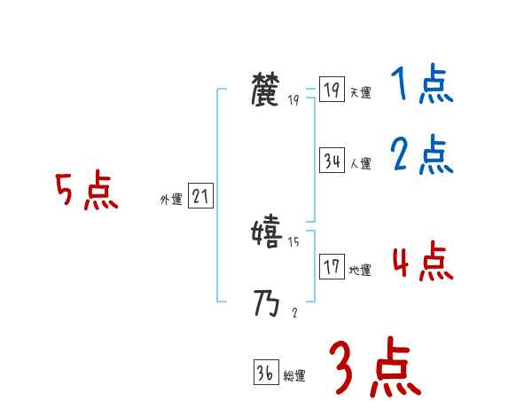 麓嬉乃さんの画数の鑑定結果