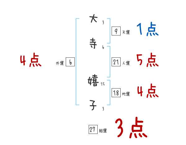 大寺嬉子さんの画数の鑑定結果