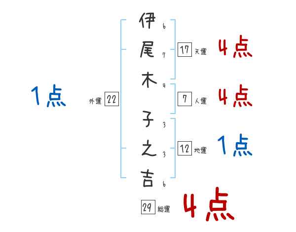 伊尾木子之吉さんの総運は29画の4つ星