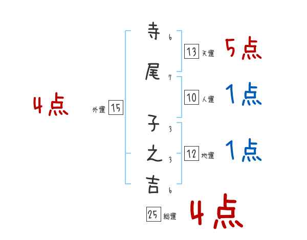 寺尾子之吉さんの画数の鑑定結果