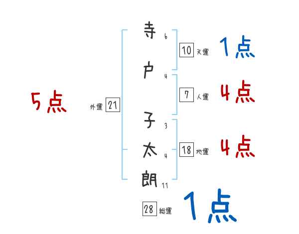 寺戸子太朗さんの画数の鑑定結果