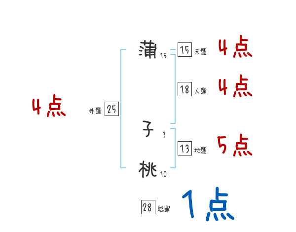 蒲子桃さんの画数の鑑定結果