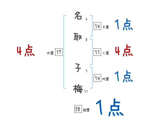 名取子梅さんの画数の鑑定結果