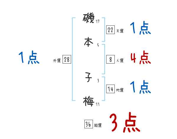 磯本子梅さんの画数の鑑定結果