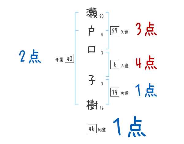 瀬戸口子樹さんの画数の鑑定結果
