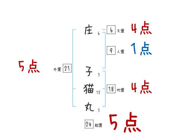 家系が持つ宿命的な運勢を表します。祖先から受け継いだ苗字ですので自分の力が及びません。家柄を象徴します。