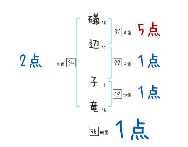 礒辺子竜さんの画数の鑑定結果