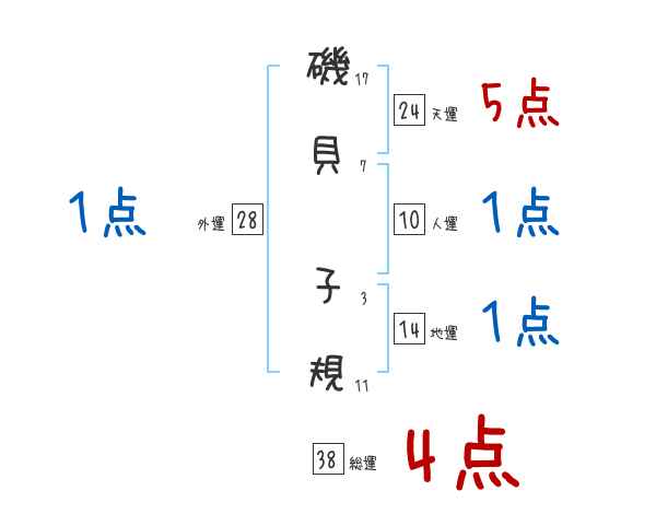 磯貝子規さんの画数の鑑定結果