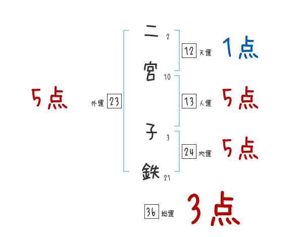二宮子鉄さんの画数の鑑定結果