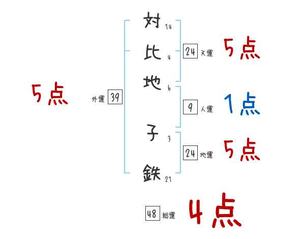 対比地子鉄さんの画数の鑑定結果