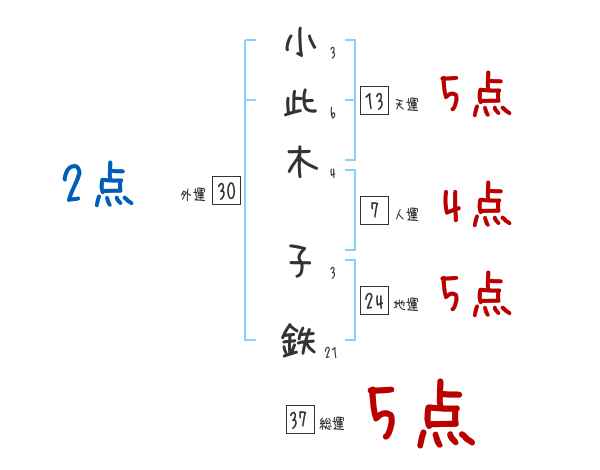 天運![]() | 小此木子鉄さんの天運は13画の5つ星!才能に恵まれ人気がある。名声を手に入れる。円満な人生。 家系が持つ宿命的な運勢を表します。祖先から受け継いだ苗字ですので自分の力が及びません。家柄を象徴します。 |
