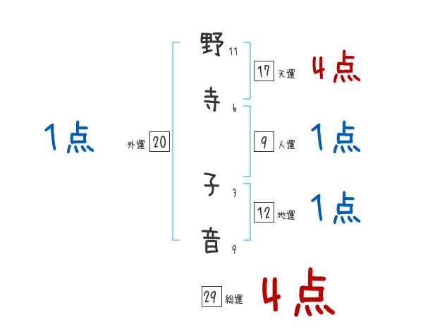 野寺子音さんの画数の鑑定結果