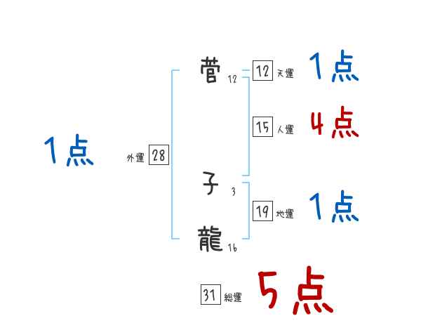 外運![]() | 菅子龍さんの外運は28画の1つ星!家庭環境に注意。スポーツで活躍できる能力があるかも。 生活面を象徴する運勢です。外部から受ける影響力を表し、結婚運、家庭運や職場、環境への順応性を表します。 |