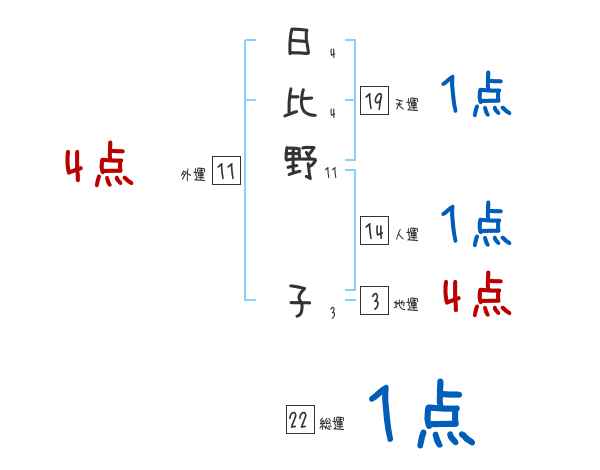 日比野子さんの画数の鑑定結果