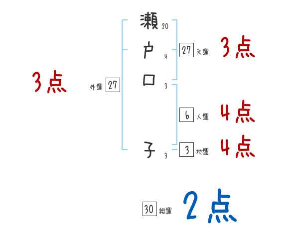 瀬戸口子さんの画数の鑑定結果