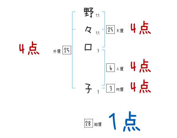 野々口子さんの画数の鑑定結果